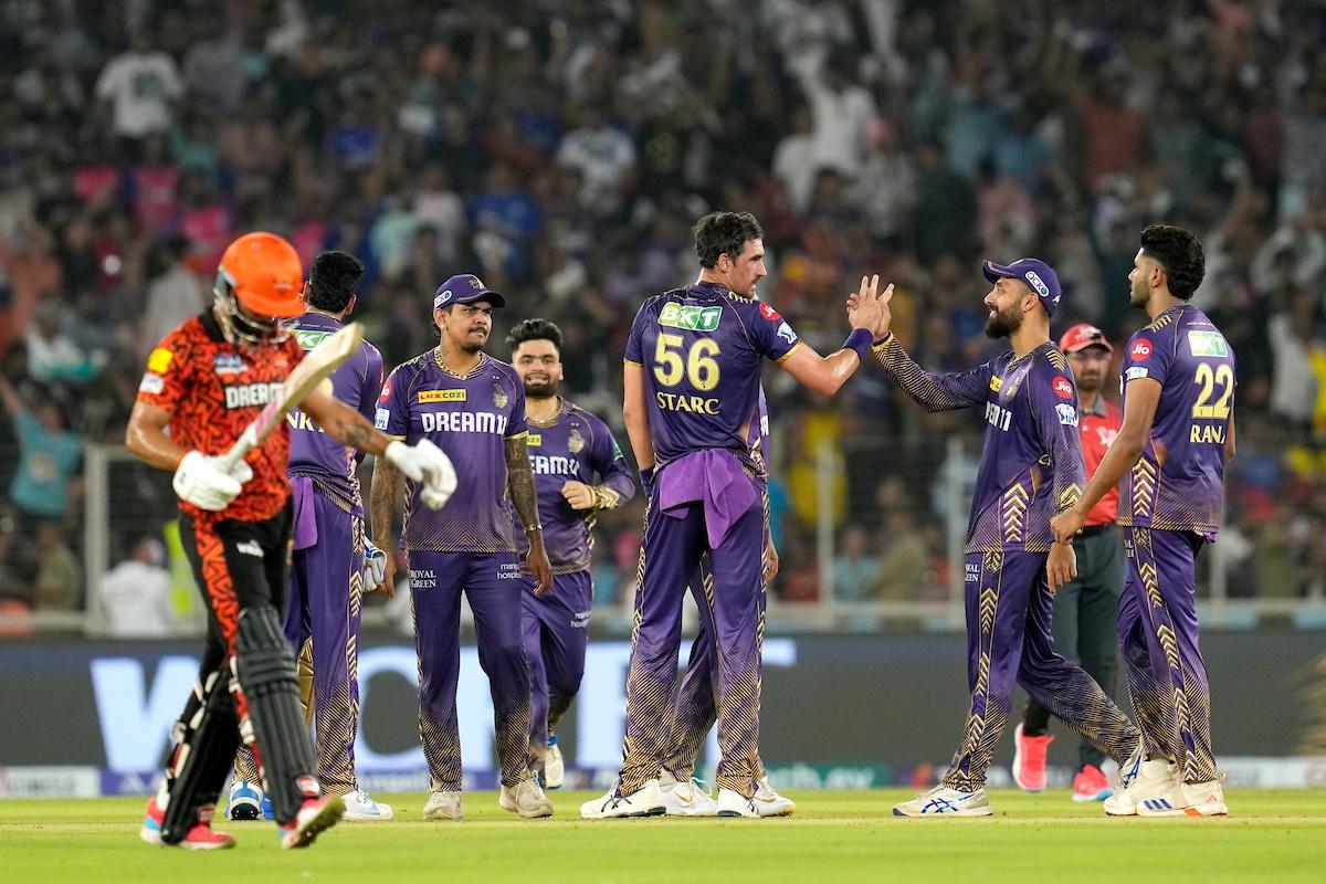 Klaasen strides in as the new batter. Harshit Rana is brought into the attack now. Tripathi pushes the first ball towards cover but finds no gap. He manages to cut the next one behind point for a single. Klaasen announces his arrival with a boundary. The next delivery, he pushes towards cover for no run. He then confidently ducks under a bouncer. A single to end the over concludes a total of 6 runs from it.