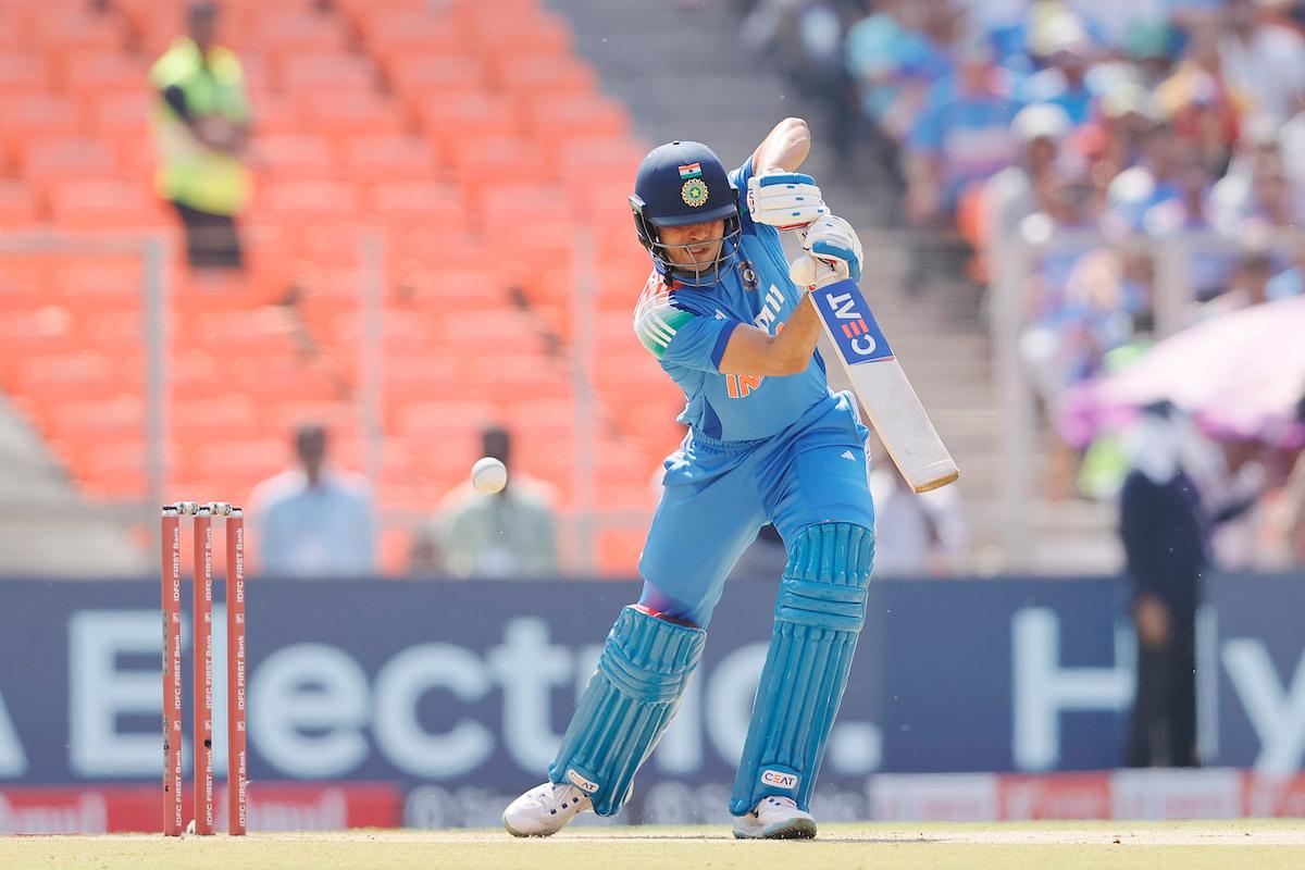 Gill then plays the ball to mid-wicket and scampers for a single.