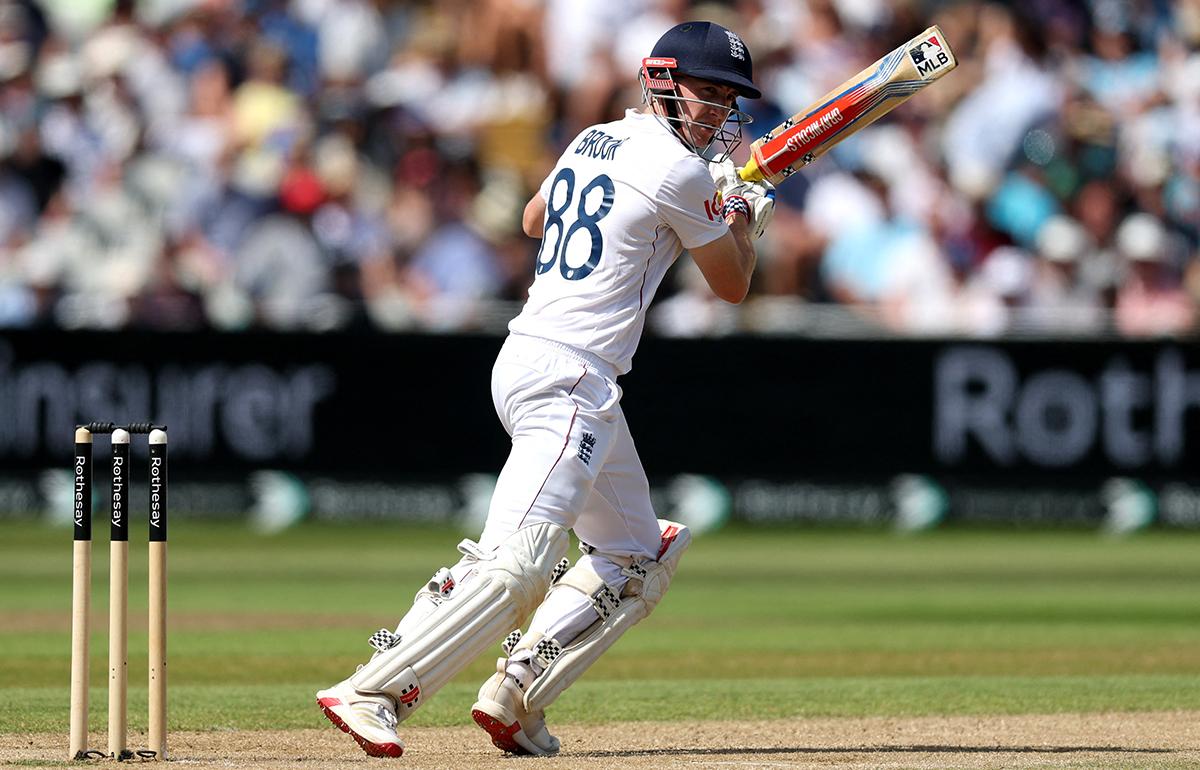 Starts off with two dot balls. The third is a back of length delivery resulting in a single for Brook.