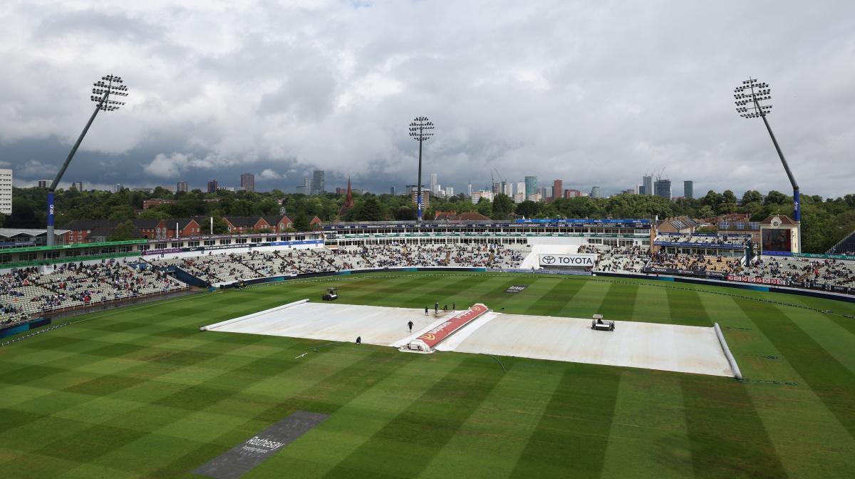 It's raining again at Edgbaston, and this time the entire square - including the run-ups - has been covered.