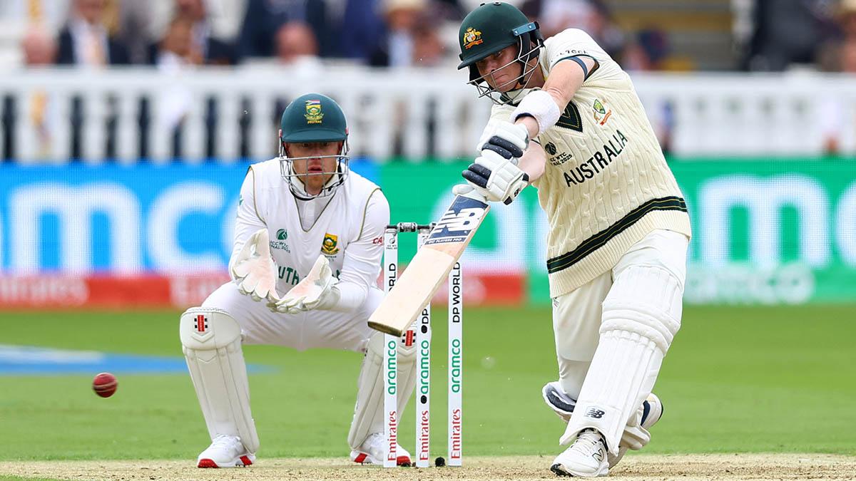 A tossed up delivery outside off, Smith drives confidently, but the ball takes a thick outside-edge and Jansen at slip almost fumbles it but completes the catch on the third attempt.