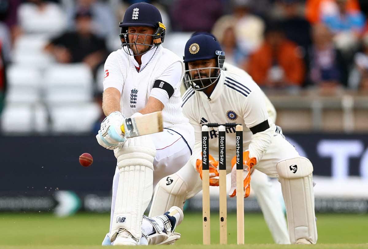 Root flicks Jadeja off his pads for a single before Smith is beaten all ends up by an unplayable delivery from Jadeja, which turns and bounces sharply and even wicketkeeper Pant can't gather it.