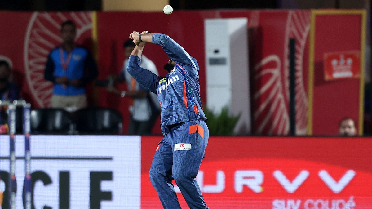 Avesh Khan was brought on to finish the powerplay, hoping to stem the flow of runs-but Punjab Kings kept the scoreboard moving. Prabhsimran and Shreyas Iyer exchanged early singles before a big moment-Prabhsimran skied one, but Nicholas Pooran dropped a sitter at deep point, failing to get a solid base under the ball. He redeemed himself partially with a brilliant stop at backward point, diving sharply to save a boundary.