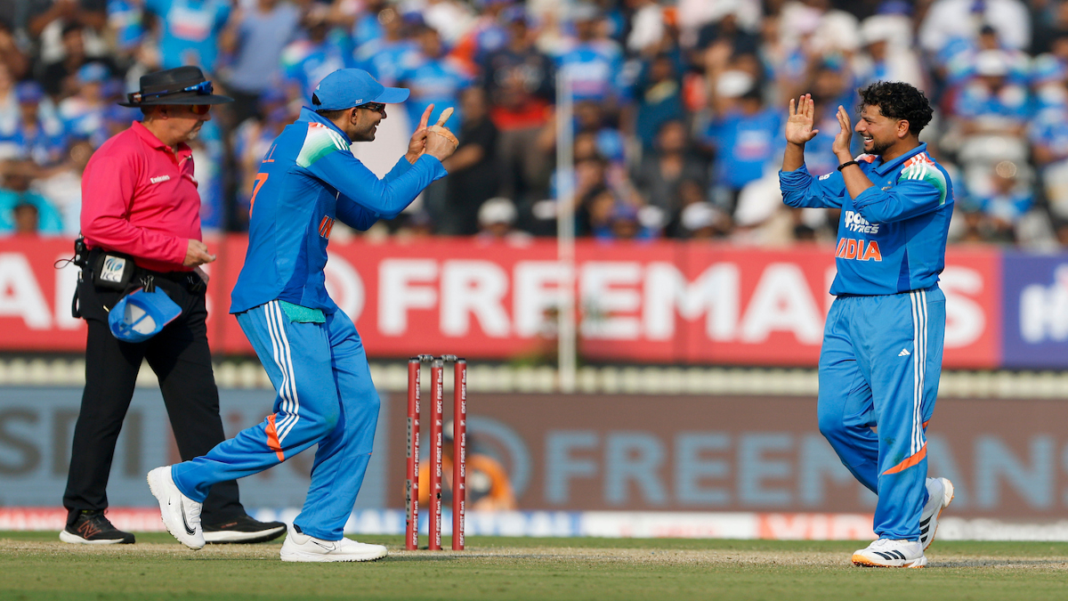 Kuldeep continues and Hay, after playing out a dot, drives the second delivery down to long-off for a single.