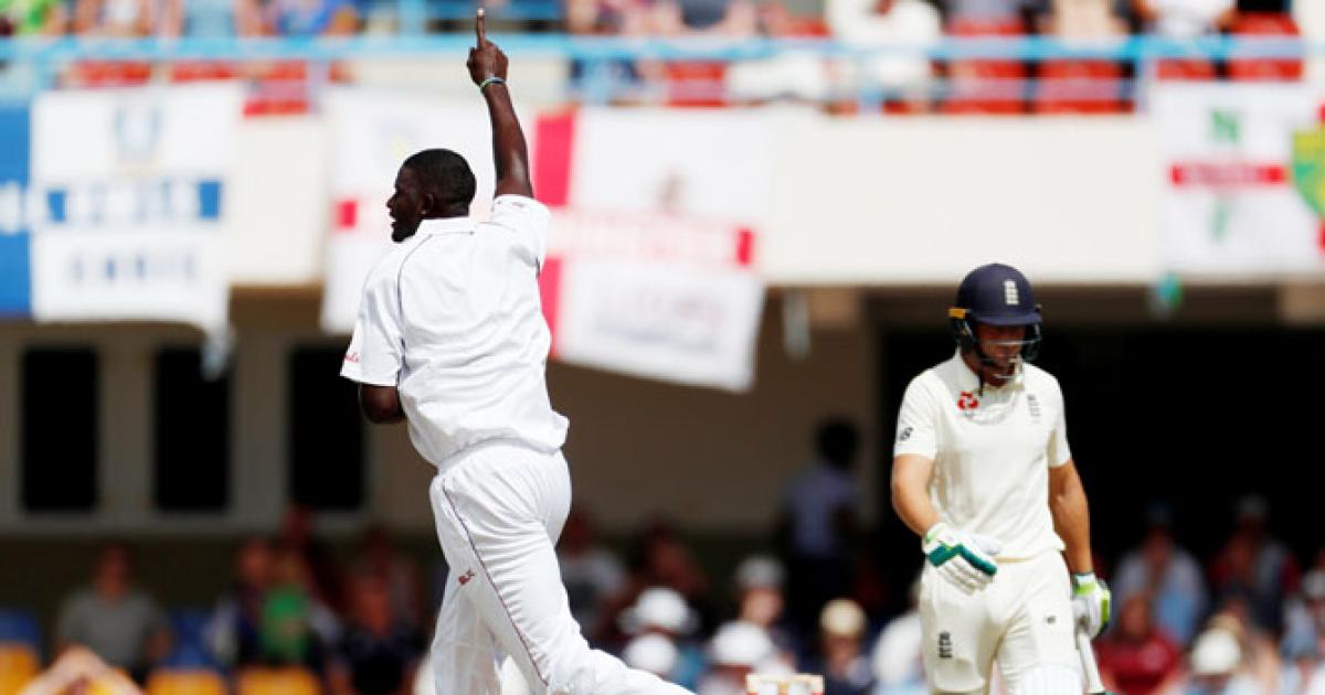 Earlier, Alzarri Joseph got the prize scalp of Root (7) with a virtually unplayable ball that rose viciously off a good length, struck the bat handle and looped up into the slip cordon.