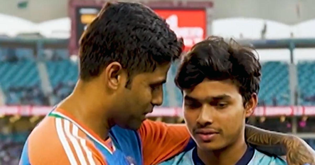 Suryakumar placed his arms around Dunith's shoulders, spoke for a few minutes before parting ways with a hug.