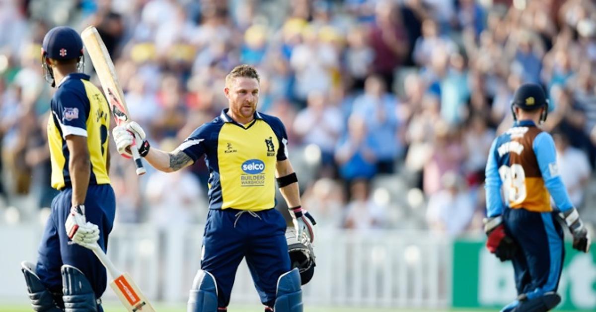 New Zealand captain Brendon McCullum smashed the second-highest Twenty20 score of all time when he hit a typically belligerent 158 not out in 64 balls for Birmingham against Derbyshire on Friday.