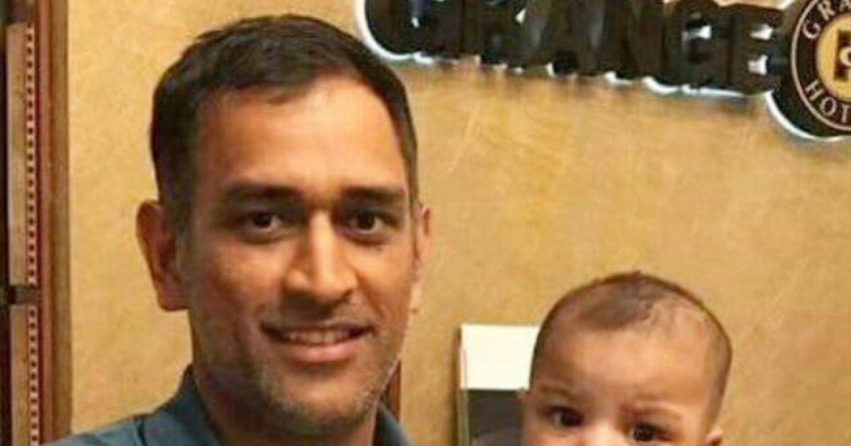 Former Indian captain Mahendra Singh Dhoni got clicked with Pakistani captain Sarfraz Ahmed's son, who was born in February.