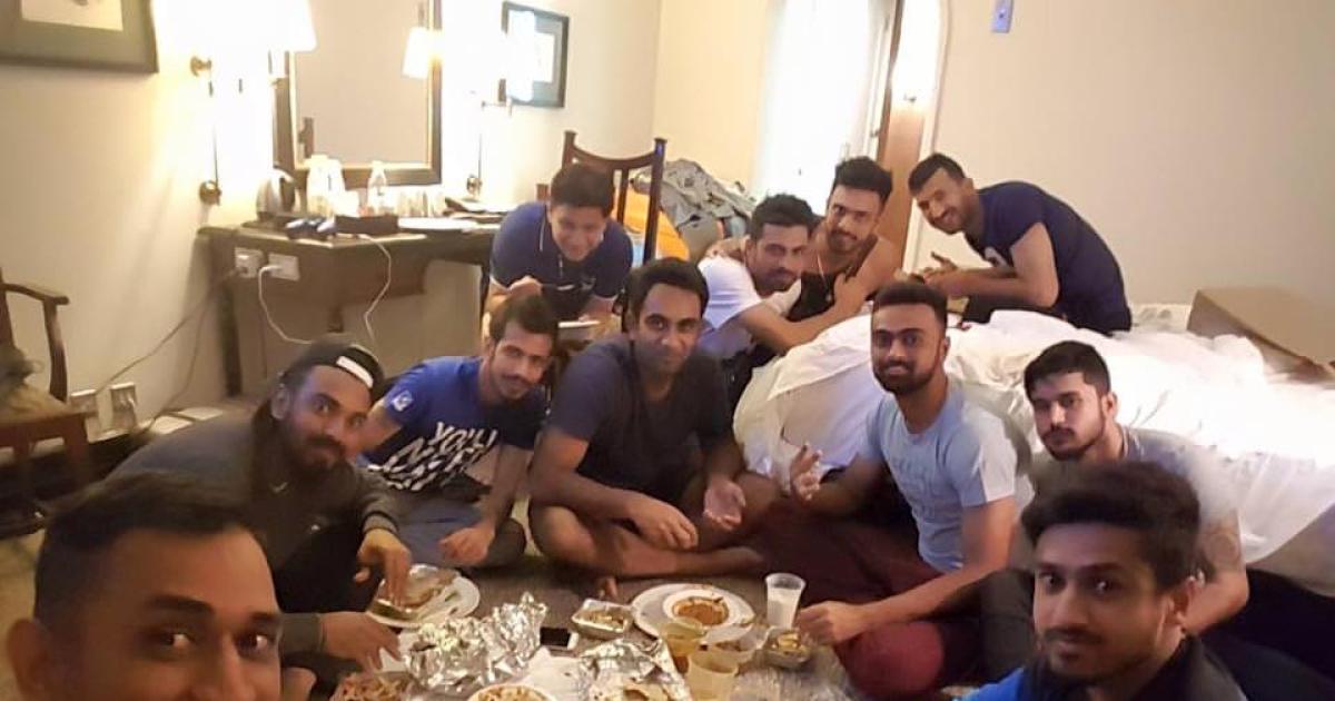 Young stars like KL Rahul, Jaydev Unadkat, Yuzvendra Chahal and other teammates are seen dining with skipper Dhoni.