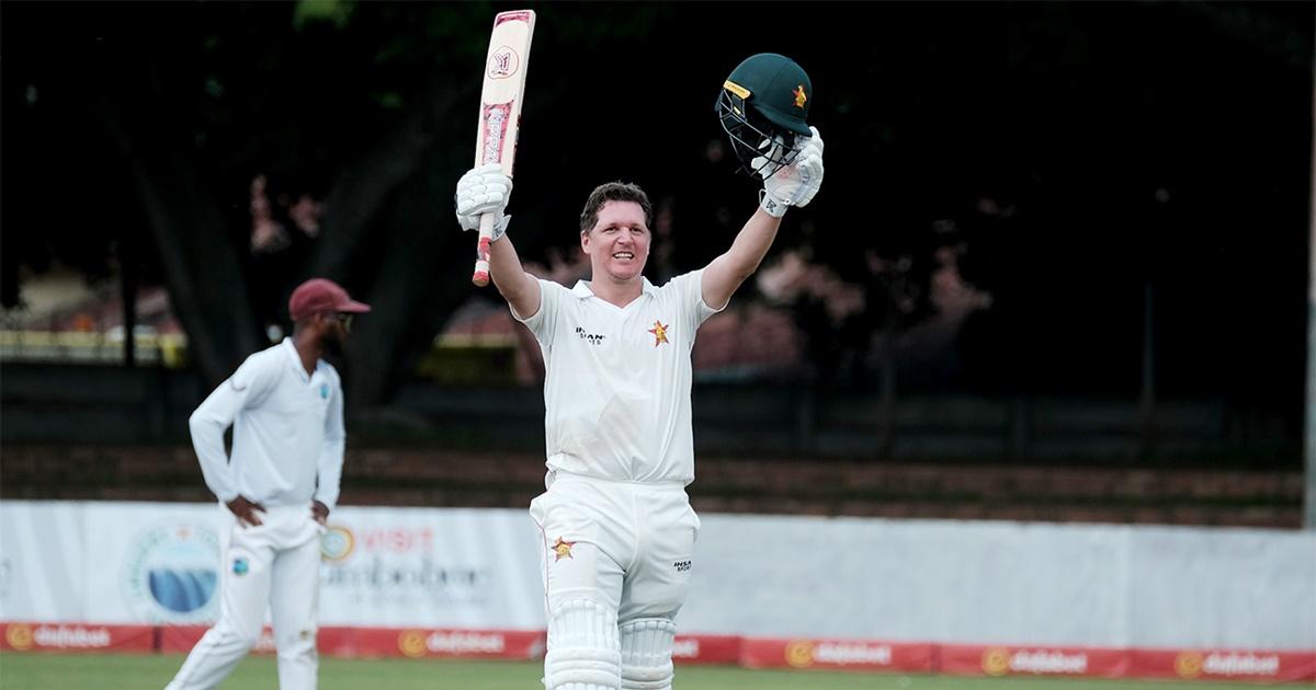 The 33-year-old left hander brought up his ton with a six over deep square leg as he and Brandon Mavuta put together a 135-run partnership for the eighth wicket, hauling Zimbabwe out of trouble after they had slumped to 192-7.