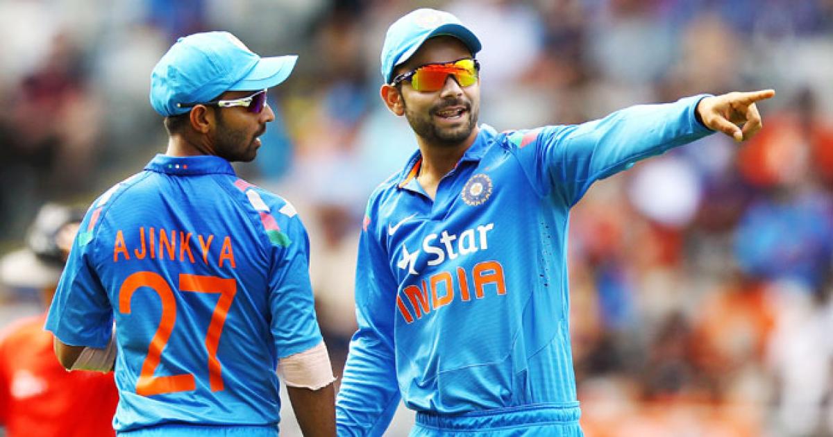 India's Ajinkya Rahane and Virat Kohli. Photograph: Getty Images