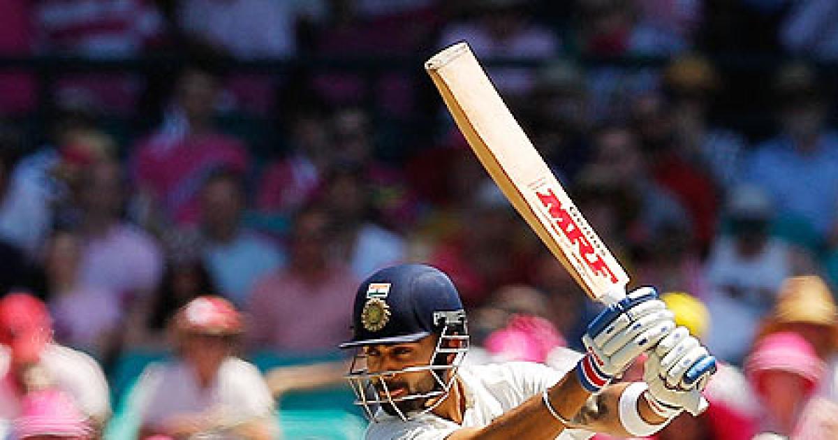 Image: Virat Kohli plays a cover drive on Day 3 of the fourth Test against Australia at the Sydney Cricket Ground on Thursday.