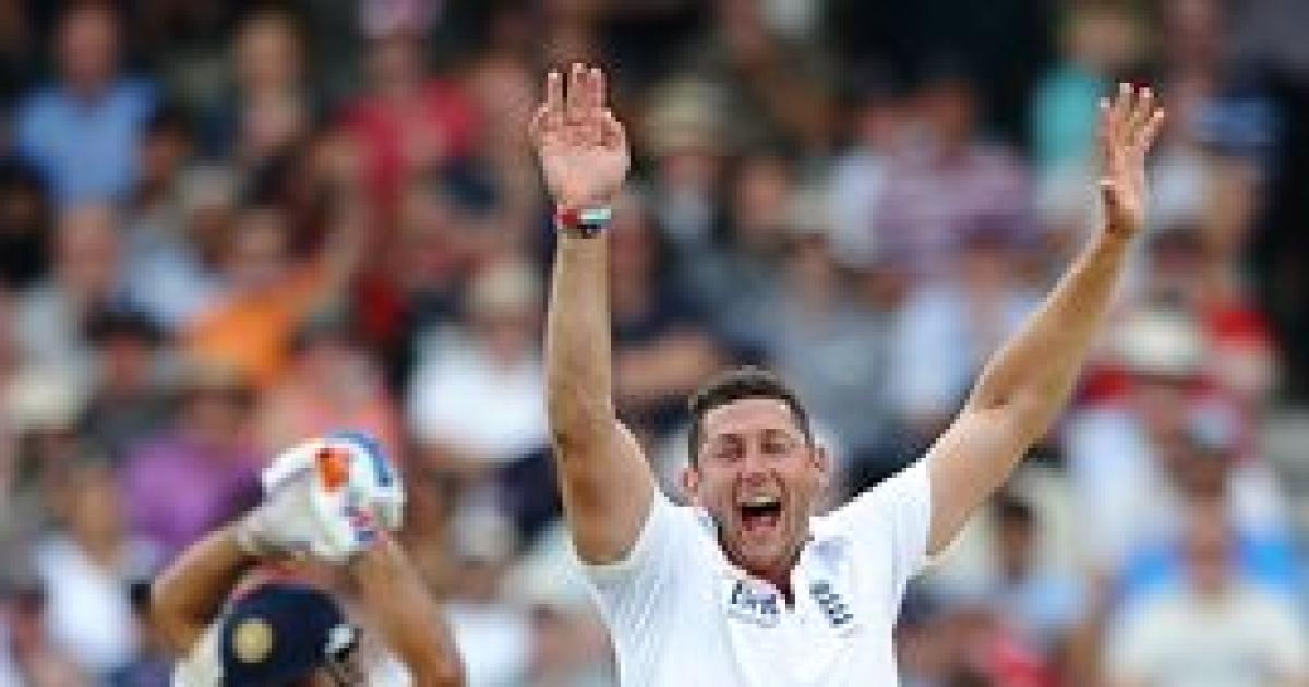 Harbhajan (46) did what he usually does when there is no pressure, swing his bat around. He helped himself to three boundaries in a Bresnan over. The bowler had the last laugh, though, having him caught by substitute (Elstone) at fine-leg.