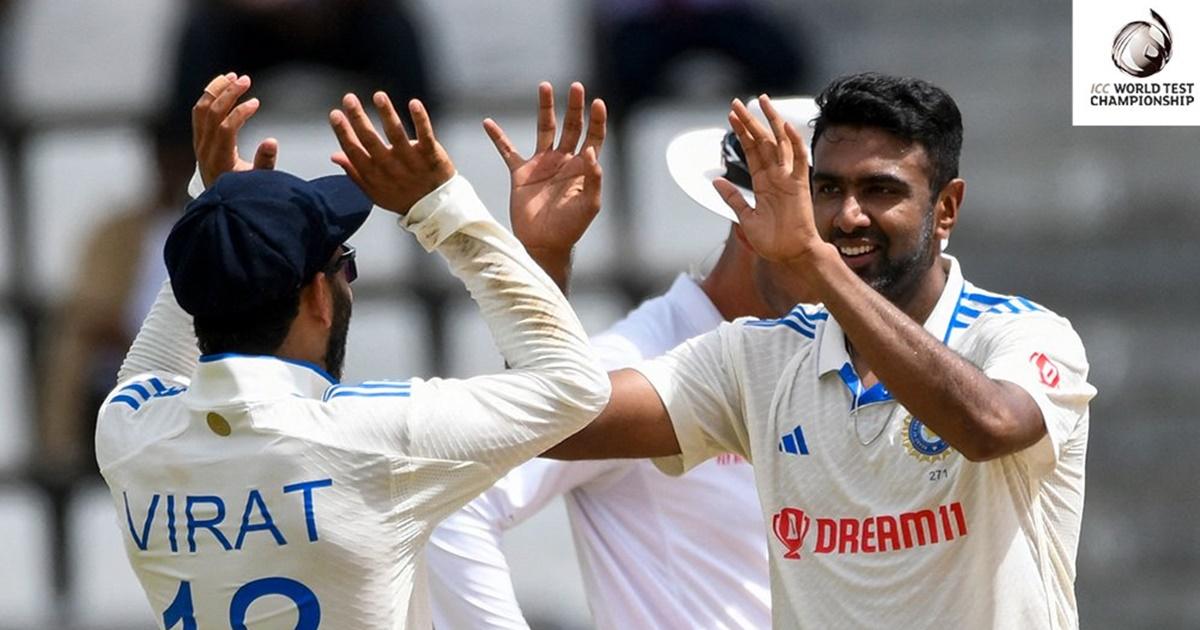 Left-arm spinner Ravindra Jadeja backed up Ashwin by claiming the wickets of Jermaine Blackwood, Joshua Da Silva and Kemar Roach.