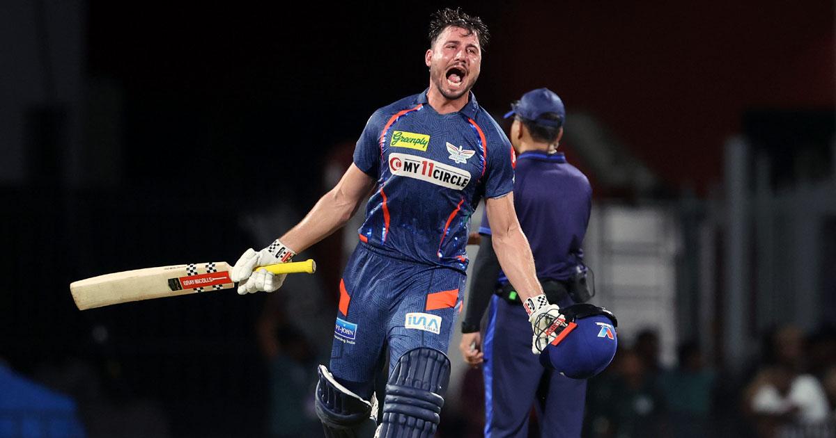 The Australian's 6'1 inch frame is a storehouse of power and he made no effort to hide it too, crunching some fours and sixes, and nothing was more special than his maximum off pacer Mustafizur Rahman, who had earlier consumed LSG skipper KL Rahul cheaply.