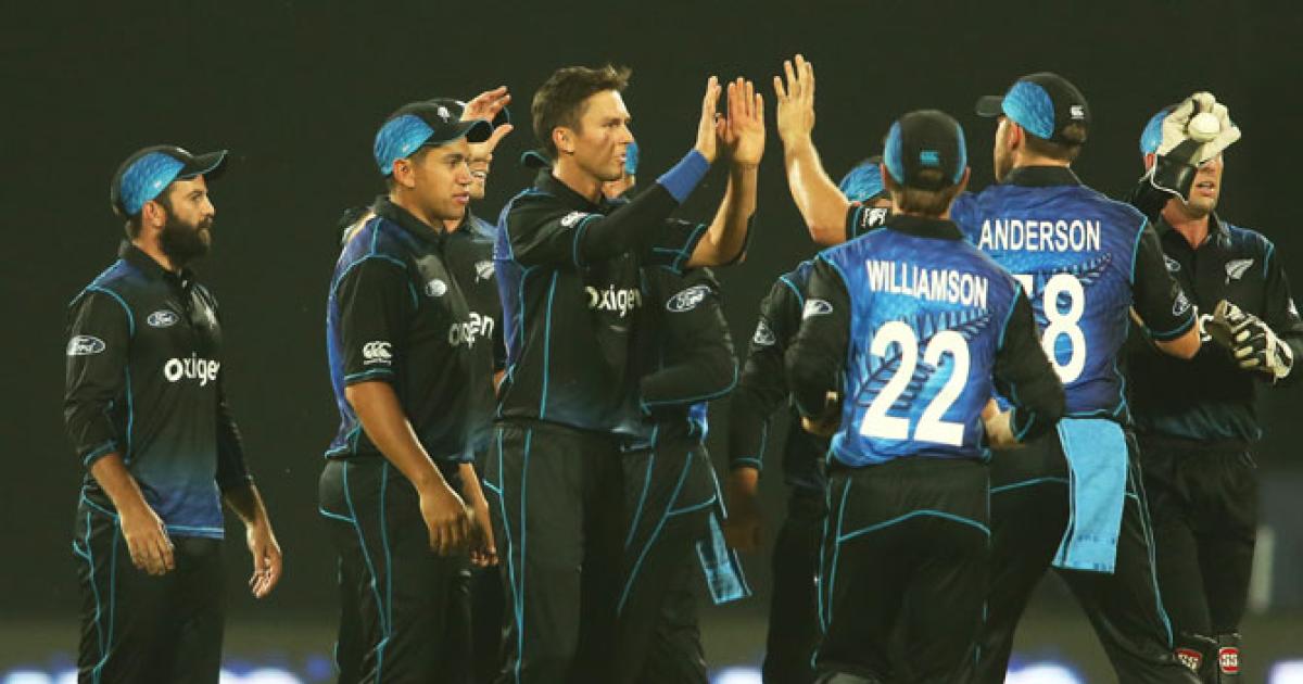IMAGE: New Zealand players celebrate a wicket. Photograph: BCCI