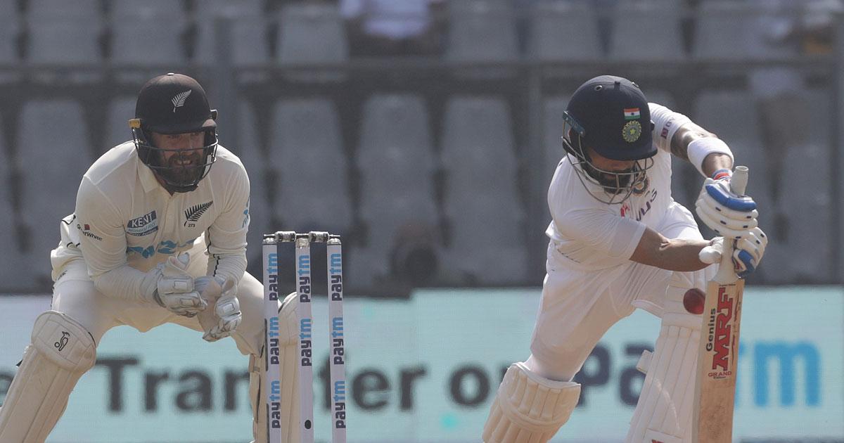 Kohli was adjudged leg before by the on-field umpire to left-arm spinner Ajaz Patel though the bat and pad appeared very close to the ball.