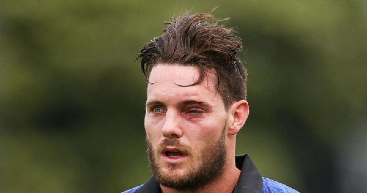 The tail-ender was left prone on the ground for a few seconds before getting up to cheers from the crowd and making his way off the field with blood and bruising around the eye.