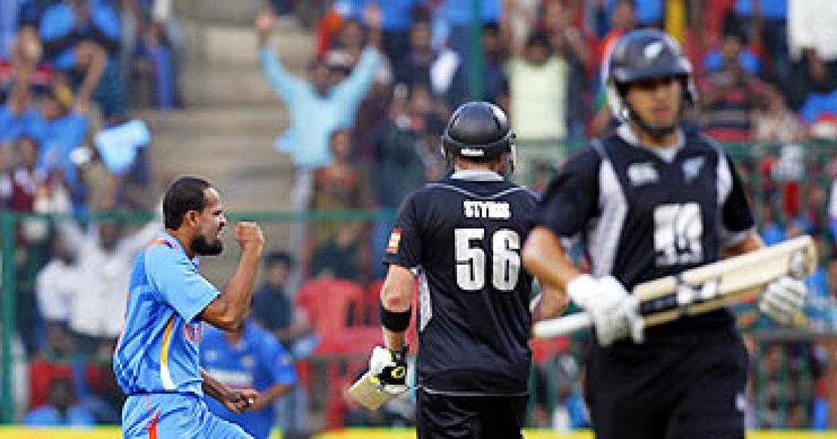 Pathan struck again in his next over, rattling the stumps of Kyle Mills (1), even as the visitors found themselves in a precarious position - they had the overs to take their total past 300 but they were falling short of wickets.