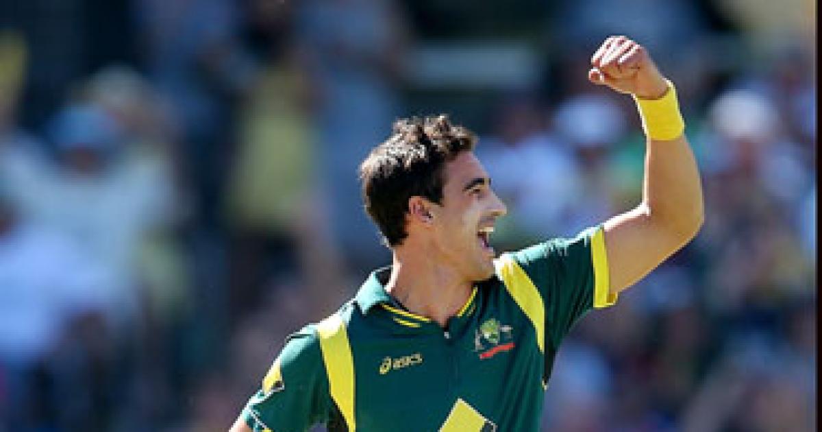 Photo: Mitchell Starc of Australia celebrates dismissing Ramnaresh Sarwan of the West Indies during game two of the Commonwealth Bank One Day International Series at WACA in Perth on Sunday. (Paul Kane/Getty Images)