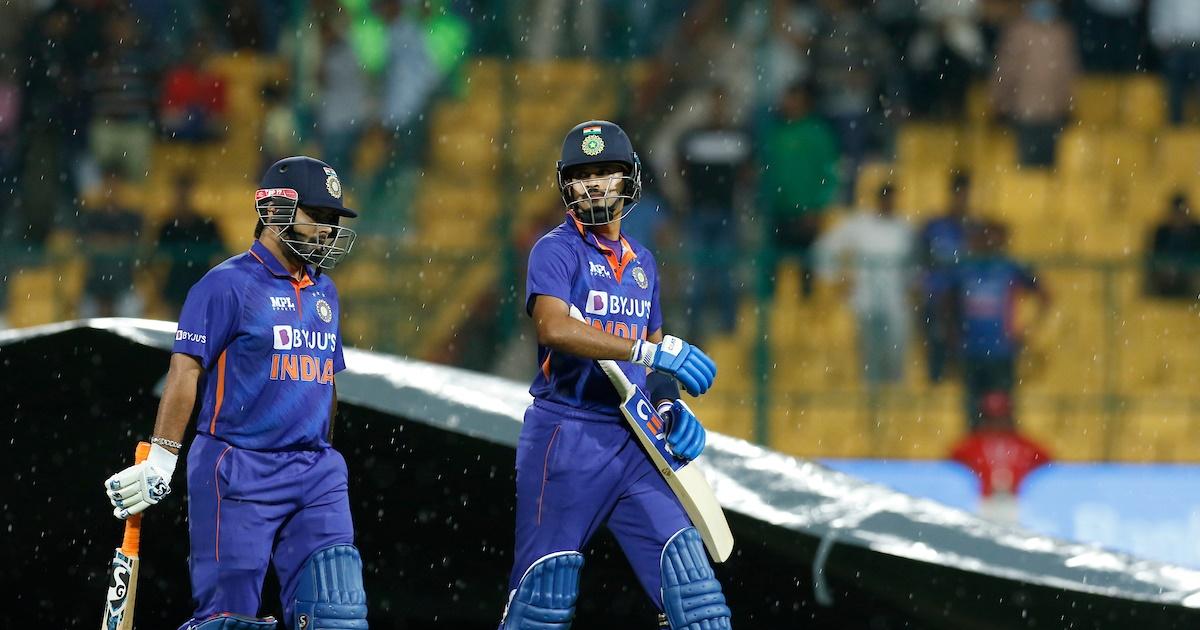 IMAGE: Before the match was interrupted by rain, India were 28/2 in 3.3 overs, with Shreyas Iyer (0 n.o.) and Rishabh Pant (1 n.o.). Photograph: BCCI