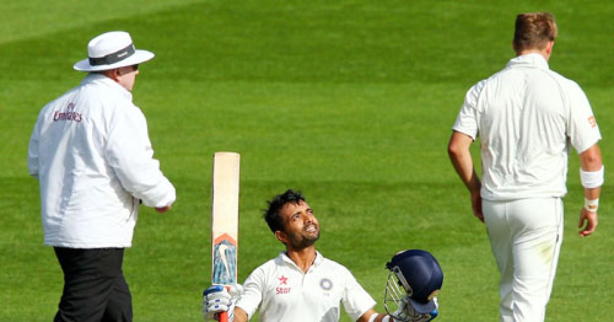 Ravindra Jadeja (26 off 16 balls) came to the crease and started hitting out, living by the sword and dying by it, in the 97th over. He added 37 runs with Rahane who was now beginning to run out of partners. But Zaheer hung around long enough for Rahane to complete his richly deserved maiden hundred, coming off 149 balls, with 15 fours.