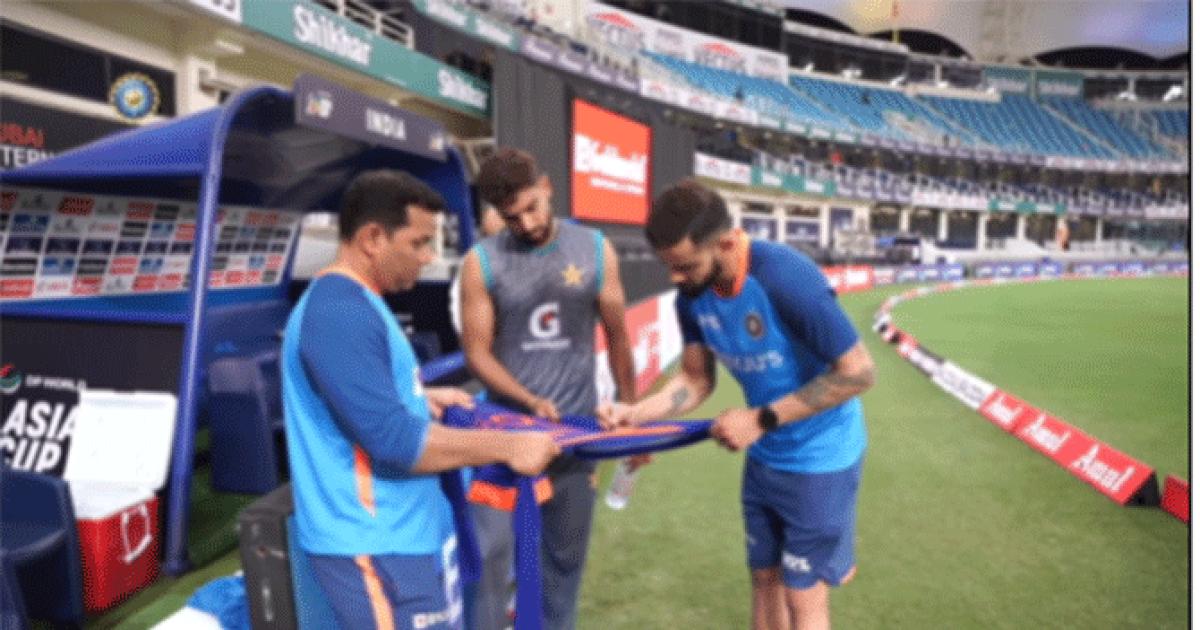 Kohli gifted an autographed jersey to Pakistan pacer Haris Rauf after the game in Dubai on Sunday.