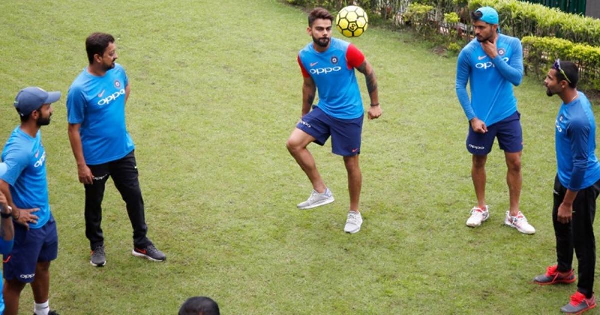 When it was raining, India made use of the dressing room lawn to play some volleyball and football.