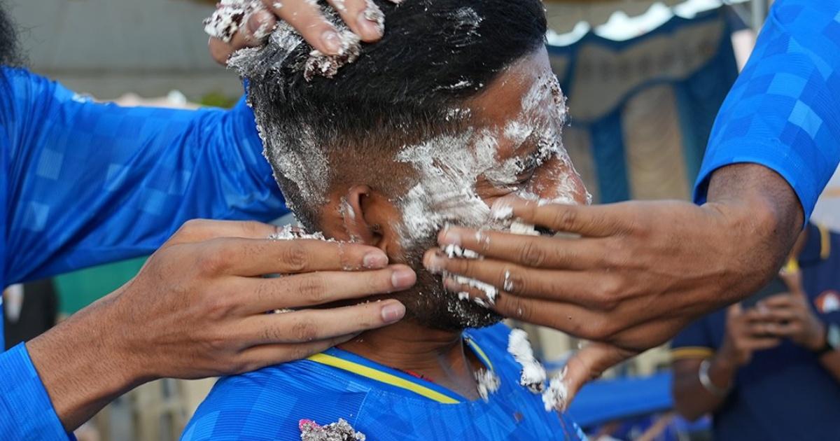 The first celebratory cake facial of the season went to new recruit Rahul Tripathi, who turned 34 on March 2. Amidst intense training sessions, CSK players took a break to ensure the birthday boy got the full treatment -- a face full of cake!