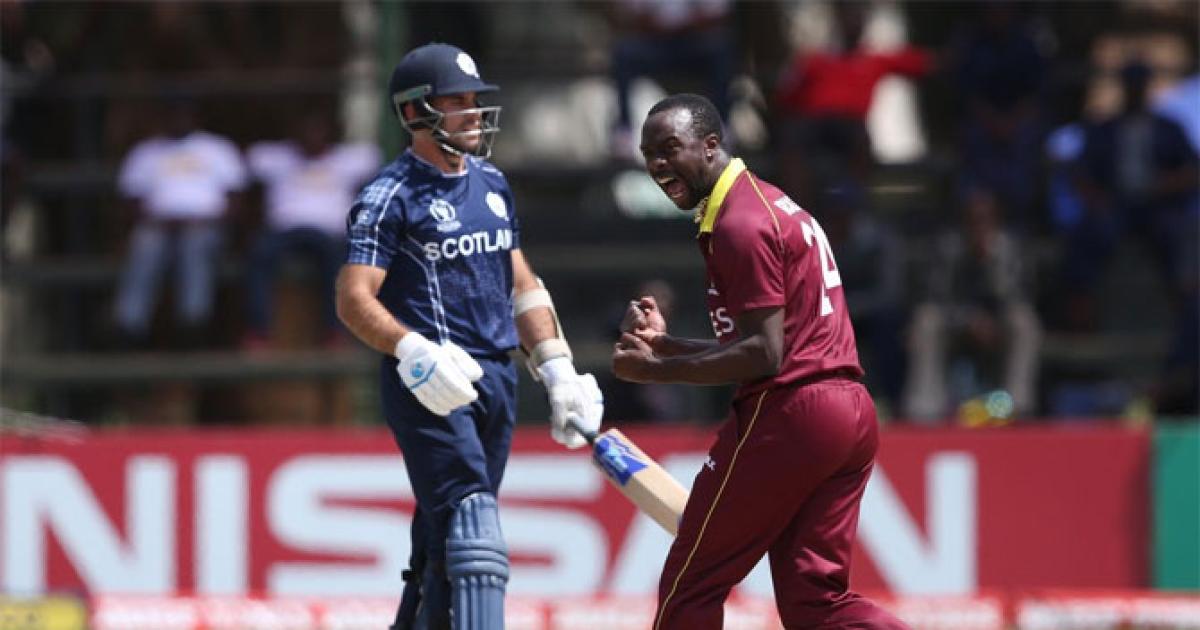 In a match that guaranteed qualification for the winner, the West Indies were bowled out for 198 to give Scotland a gilt-edged chance of participating at their fourth finals when the World Cup is hosted in England next year.