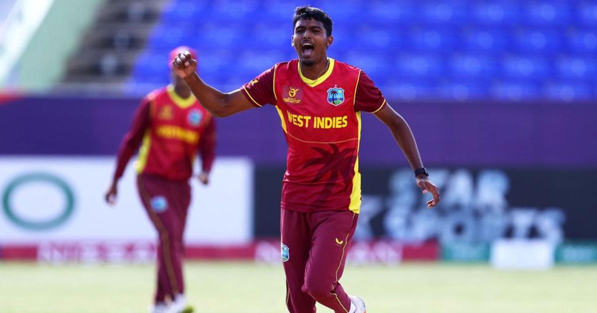 IMAGE: Shiva Sankar took the first three wickets including two in two balls on his way to match-best three for 17 as West Indies thrashed Scotland by seven wickets with more than 30 overs remaining in the Under-19 World Cup Group D match in Basseterre on Monday. Photograph: ICC