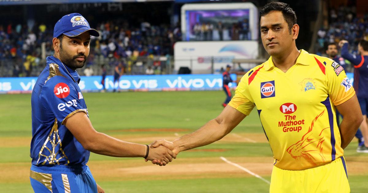 IMAGE: Mumbai Indians captain Rohit Sharma with Chennai Super Kings skipper Mahendra Singh Dhoni at the toss last year. Photograph: BCCI
