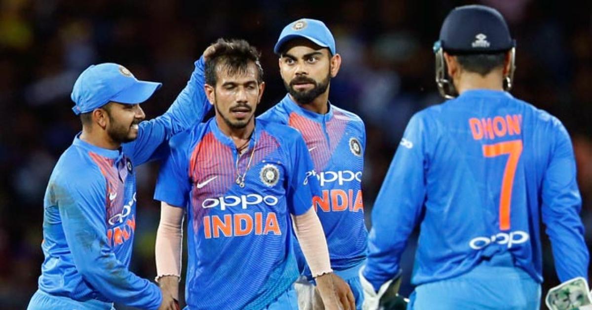 India: Virat Kohli (captain), Rohit Sharma, Ajinkya Rahane, Manish Pandey, Kedar Jadhav, MS Dhoni (wk), Hardik Pandya, Bhuvneshwar Kumar, Kuldeep Yadav, Yuzvendra Chahal, Jasprit Bumrah, Umesh Yadav, Mohammed Shami, Ravindra Jadeja and Lokesh Rahul.