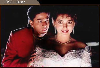 Shah Rukh plays the bad guy who throws the heroine off the terrace.