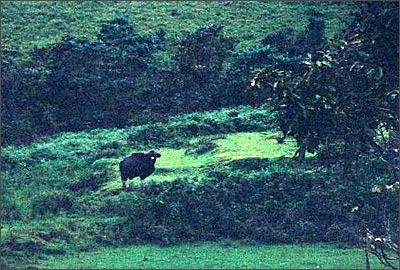 The climb down was easier and in no time we reached the third Lobo house. Here my guide pointed out the only wildlife we saw, a lonely bison grazing. By the time we reached the spot with my camera ready the bison had disappeared into the thick shoal forest near by. I could only get a distant picture of the old fellow.