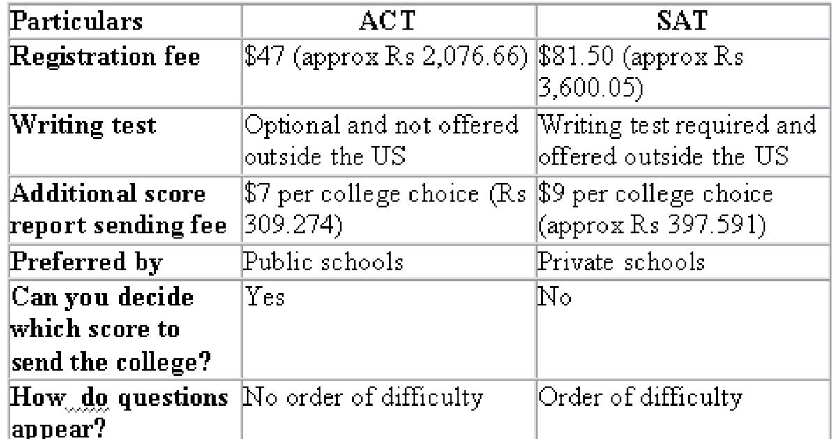 "The ACT is more straightforward because the questions are less tricky. Like the SAT, there is no specific matter to be learnt but unlike the SAT, there is no need to spend time on learning wordlists," says Helen Mathur, an education consultant.