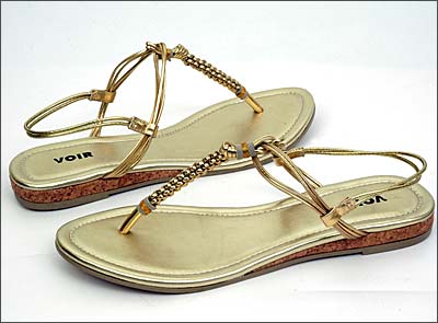 Photo Caption: Opt for metal-embellished sandals like these if flip-flops bore you.