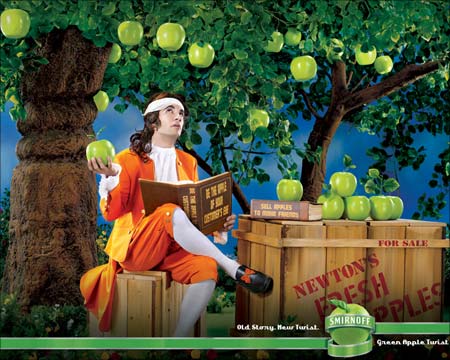 Image: Smirnoff's Green Apple Twist print ad -- the Isaac Newton theme