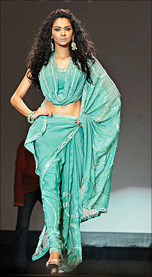 The sari made its presence felt as well, with this gorgeous teal creation being one of the stand-out examples.