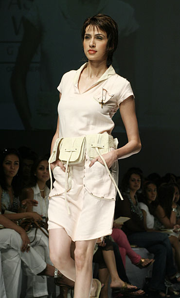 Shirt dresses are 'in' for sure and here is Dutta's take on it. Complimented by a leather pouch this little number is sure to swing heads at any casual do your way!