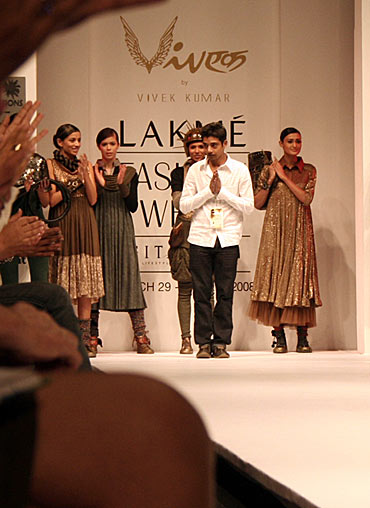 ivek soaks in the adulation as his models and those in attendance applaud.