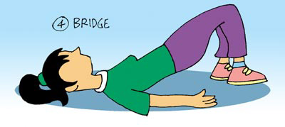 Lie in the same position as the last exercise. Slowly raise your hips till your lower and mid-back come off the floor and gently lower.