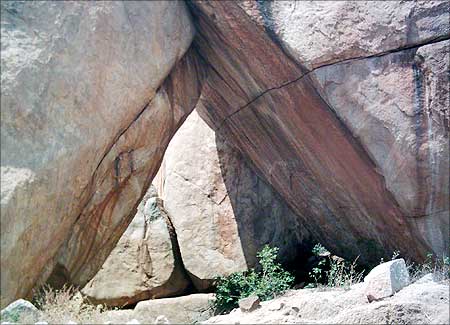 It is said every stone in Hampi has a story to tell. These boulder-like two similar looking stones (in the picture) are called Sister Stones.