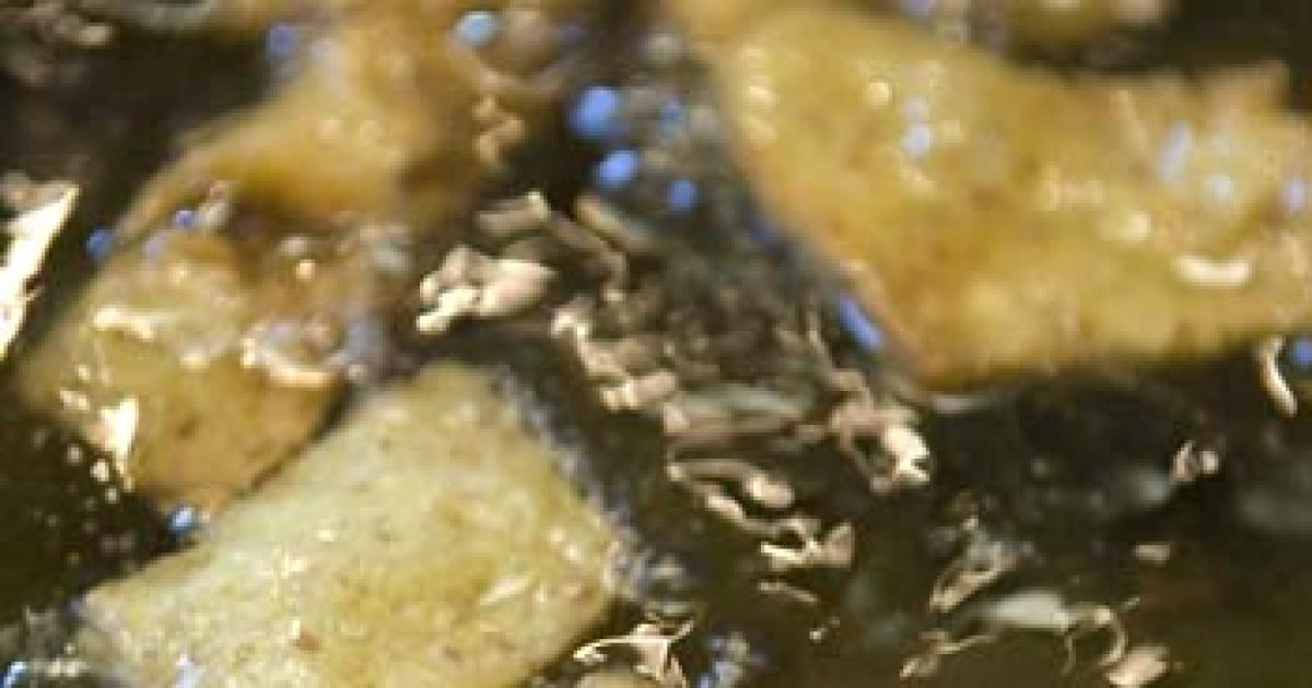 - Heat the oil in a deep pan. This should be enough for the mozzarella sandwiches to totally sink into the oil. Deep fry one or two sandwiches at a time until golden on both sides, turning once, about three minutes per batch. Remove with a slotted spoon onto a platter lined with paper towels and blot dry.