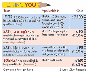 Chennai's Shashidhar Nambiar, director, IMTP Consultancy Services, a Chennai-based education advisory, explains: "You first get a conditional offer from the university. Based on your marks in English in Class XII (at least 80 per cent), it may waive your test requirement and send you an acceptance letter or wait to do so till they get your score. Either way, they will let you know if you need to take a test."