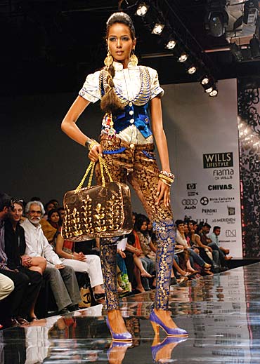 While such a gamut of colours is not everyone's cup of tea, it doesn't look so out-of-place on the catwalk. And here's a hint -- funky little waistcoats are hot this year, so make sure to pick one up for yourself!