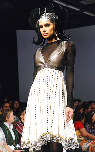 Here is Vikram Phadnis' take on this trend -- a sheer black fitted top worn underneath a dress.
