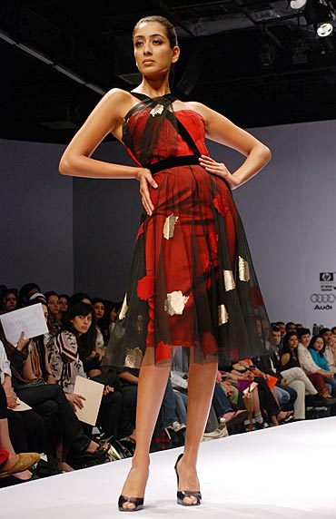 esigner duo Gauri & Nainika experimented with lace on dresses.