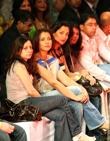 Madhu Sapre, an old hand at Fashion Week was spotted on the other side of the curtain. She made an appearance at JJ Vallaya's show. Also seen in the picture is Shekhar Kapur's ex-wife, actor-singer Suchitra Krishnamurthy.