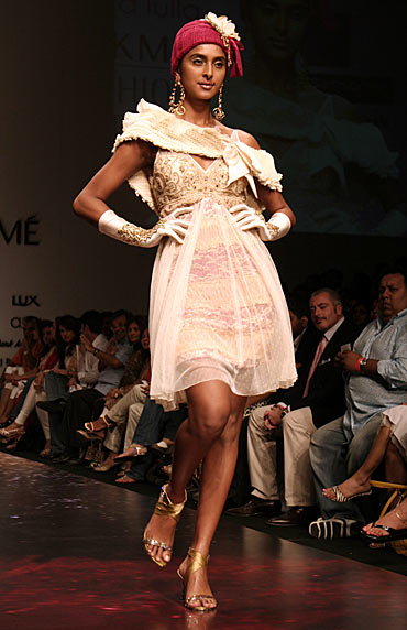 The Neeta Lulla show opened, not surprisingly, in a dramatic fashion. A dancer in a flowing chiffon kurta swirled down the stage to Sufi tunes. In a tribute to immortal love, the collection was vintage style encapsulated in delicate drapes and timeless designs, deftly weaving through Indian and western wear.